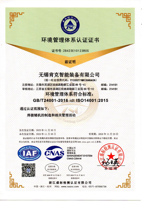 環(huán)境管理體系認(rèn)證證書(shū)